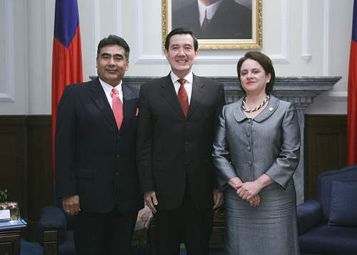 對於兩岸及外交關係的發展,總統表示,我們以和平與繁榮為目標改善兩岸關係,兩岸大三通的實現,讓雙方的緊張關係降到歷史的新低點。他也期盼兩岸和解,能進一步擴及至國際社會,雙方不再為爭取邦交國而進行虛耗與惡鬥。總統也特別向訪賓及在場陪同的駐台大使表示,中華民國是一個重視友誼、講求道義的國家,一定會與友邦繼續推動現有的各項合作交流計畫,也會擴大以強化雙邊關係。台灣是和平的締造者,與邦交國的互動不但可以促進台灣在國際間的生存發展,也可以為友邦提供必要的協助。