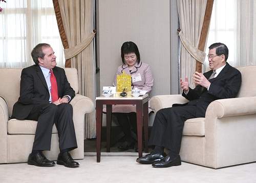 晤談間,康博偉代表提及台灣在因應此波金融風暴中所採取的措施,讓他印象十分深刻。副總統表示,台灣屬於淺碟型小型經濟體,主要以外貿出口市場為主,尤以美國為大宗,因此一旦美國發生金融問題,台灣自然受到連帶衝擊,但在這次嚴峻的挑戰中,政府提出許多因應對策,都獲得不錯成效,包括提出「新鄭和計畫」,希望能開拓新興市場;進行擴大內需,以加強整個國內市場的能量,實際作法除發放消費券外,也採取穩定金融措施,協助金融業化解經營危機,同時擴大公共投資來挽救失業、創造就業。