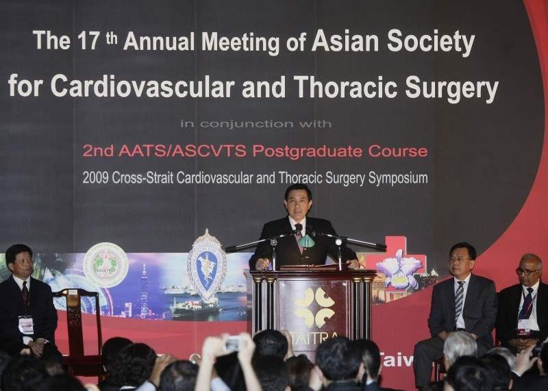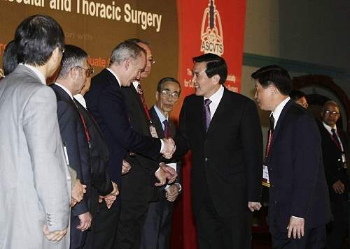 總統也表示,今年在台灣舉行的年會是亞洲心臟血管及胸腔外科學者專家交換學術意見的主要場合,有來自46國醫療專家參與,160名世界知名學者在會中提出報告,他相信經由深度的討論與意見交流,將使與會人員進一步瞭解台灣在心臟血管及胸腔外科上的成就,並提升台灣在這領域的表現,我們深切期盼能與各國學者專家們一起合作,為心臟血管及胸腔外科醫學,打造更美好的未來。
