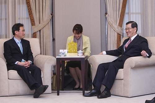 韓國國會知識經濟委員會鄭長善委員長、林東奎委員及金載均委員下午由外交部次長林永樂陪同,前來總統府拜會副總統。