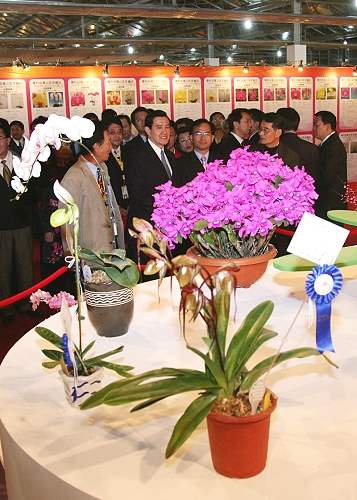 馬英九總統今天前往台南縣後壁鄉台灣蘭花生技園區,出席2009台灣國際蘭展(Taiwan International Orchid Show)開幕典禮,除為開展剪綵,也前往會場參觀展覽作品。