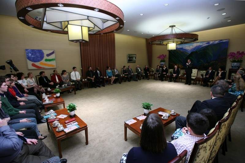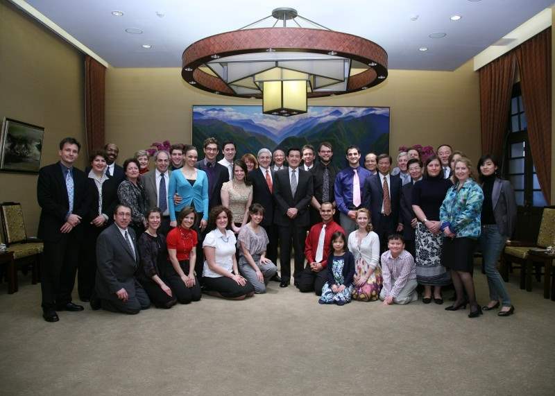 賓州州立大學音樂劇場學生亞洲行訪問團一行,下午由Spanier校長夫婦率領,考選部部長楊朝祥、教育部次長呂木琳陪同,前來總統府與總統會面,國安會諮詢委員詹滿容也在座。