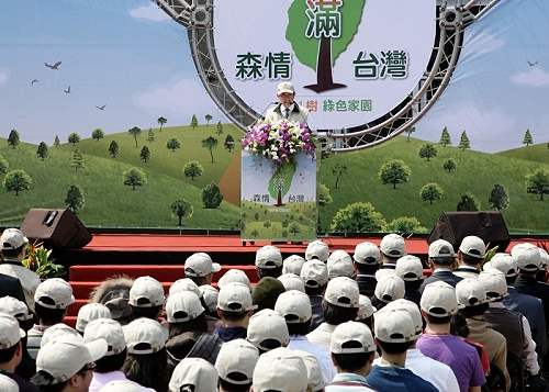 總統指出,2007年亞太經濟合作(Asia-Pacific Economic Cooperation,APEC)在「APEC領袖對氣候變遷、能源安全與潔淨發展宣言」會議中,決議在2020年前要增加APEC會員體區域森林覆蓋率面積2,000萬公頃以上。另外在「京都議定書」內容中亦肯定森林資源對吸收溫室氣體的效果,明定1990年以後所進行的造林、再造林及森林採伐的二氧化碳吸收或排放的淨值,可併入排放減量值計算。從這些例子即可看出,透過植樹造林來拯救地球危機,已經成為世界各國共同關注的議題與努力的目標。