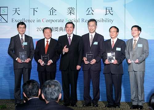 馬英九總統今天下午前往台北晶華酒店,參加《天下雜誌》所舉辦的「企業公民獎」頒獎典禮,除應邀致詞,並代表該雜誌頒獎給台積電、台達電、中華電信、光寶科技、玉山金控等五家得獎企業。