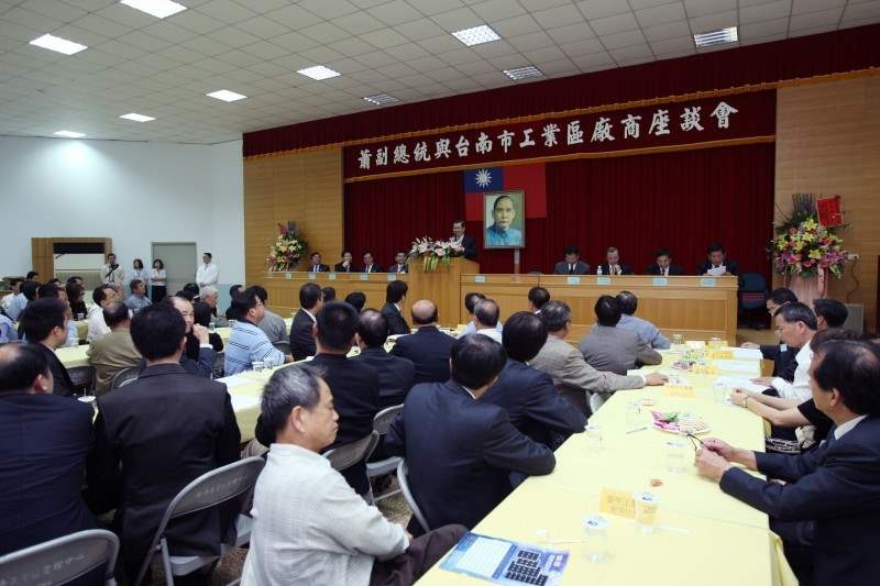 蕭萬長副總統今天下午在台南市安平工業區與廠商座談,關心地方產業發展情形,在聽取企業界心聲後作綜合回應。