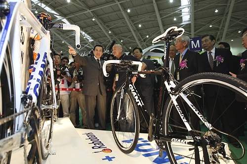 總統指出,台灣在自行車方面的發展令人驚奇,去年外銷數量達540萬輛。他期許說,除了外銷品質優良的自行車,國人也應多使用國人所發展、最好的自行車,把台灣變成自行車島,而行政院對此已提出完整的計畫,要完成台灣全部的自行車道,各縣市也努力於自行車道的建設,例如他在擔任台北市長時分別修建106公里、26公里的河濱與市區自行車道,另台北市及高雄市也有出租的公共自行車,其他各縣市也正積極推動中。