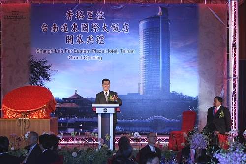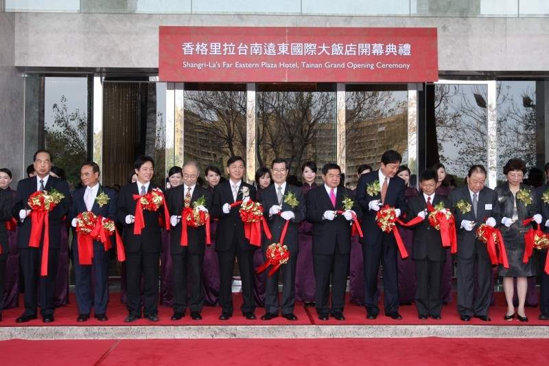 副總統指出,台北已有香格里拉遠東飯店,營業15年,建立了優質口碑,可謂業界典範,香格里拉集團在全世界有62家國際五星級連鎖飯店,今天台南遠東飯店的加入證明了遠東集團的績效,同時讓香格里拉增添新的生力軍。