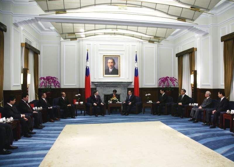 日本早稻田大學總長白井克彥一行,上午由外交部次長夏立言陪同,前來總統府拜會總統,國安會諮詢委員楊永明也在座。