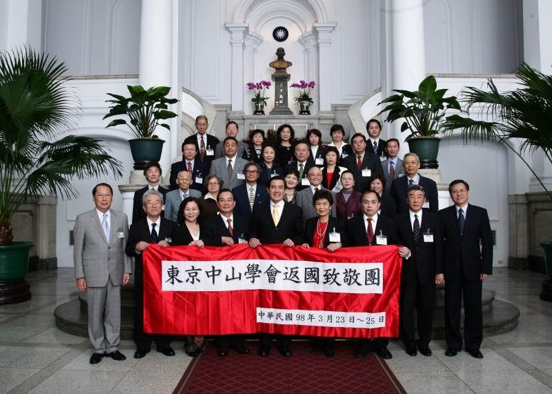 馬英九總統今天下午在總統府接見東京中山學會暨日本僑領返國致敬團。由於去年他訪日時受到團員們熱情接待,此次有機會在總統府親自接待大家,總統感到非常欣慰。