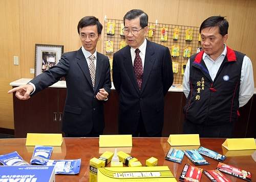 隨後,副總統參觀北回化學公司,對該公司生產身體用膠水等先進科學產品,表達肯定與勉勵。