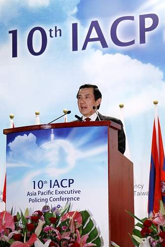 馬英九總統今天上午應邀在台北圓山大飯店舉行的「國際警察首長協會(IACP)第10屆亞太地區年會」開幕典禮致詞,代表我國政府與人民歡迎各國警察首長來台與會。