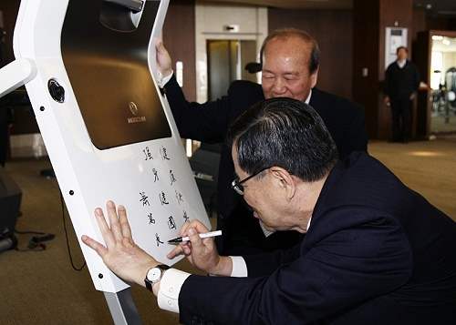 隨後,副總統前往喬山健康科技公司參訪,除聽取簡報之外,也參觀該公司樣品室,實地瞭解其所研發的健身器材及產銷情形。