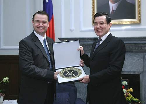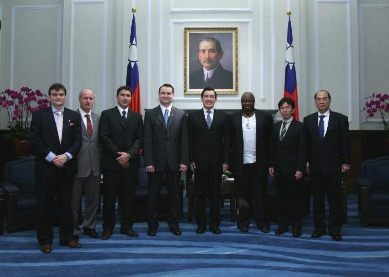 國際大學運動總會評鑑小組上午由副會長史戴芬伯格(Stefan Bergh)及魯西安諾卡伯洛(Luciano Cabral)帶領,教育部部長鄭瑞城、體委會主委戴遐齡及台北市市長郝龍斌陪同,前來總統府晉見總統,國安會副秘書長高長也在座。