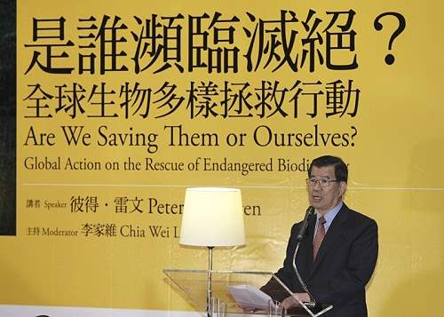 副總統進一步指出,2000年,雷文教授與李遠哲博士共同主持「台灣生物多樣的未來座談會」,隨後在雷文教授的推波助瀾下,我中央研究院終於成立「生物多樣性研究中心」,研究內容連結生物學、生物科技、生態學等,為廣泛的生物多樣議題提供了最實際的思考與運用模式。