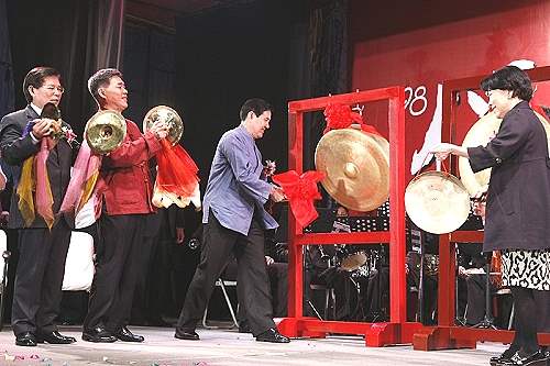 馬英九總統今天晚間應邀參加台北市大龍峒保安宮2009年保生文化祭開鑼儀式,為儀式剪綵並敲鑼,開啟今年文化祭序幕。