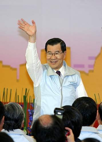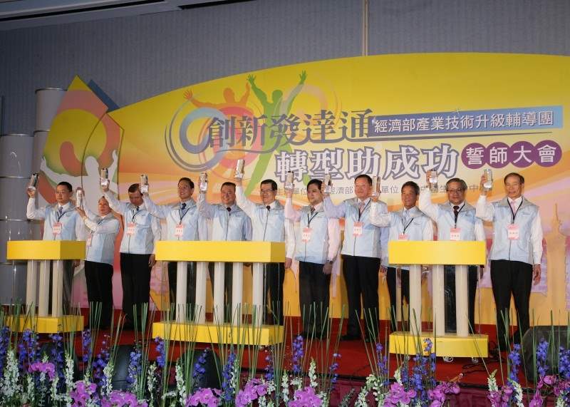 蕭萬長副總統今天上午出席由經濟部在台北市國際會議中心舉辦的「經濟部產業技術升級輔導團」誓師及授旗大會,並與經濟部部長尹啟銘共同將象徵「創新研發能量」的水晶石置放於水晶座上,代表台灣產業技術升級動能正式啟動。