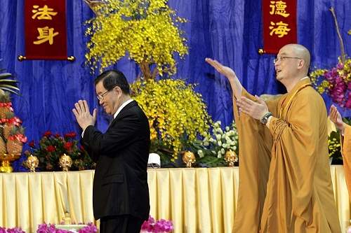 副總統最後表示,今天的大典在佛教界長老的帶領下盛大舉行,台北縣周縣長及多位民意代表都出席共襄盛舉,代表台北縣作為一個全國人口最多的重要行政區域,對大典與宗教的重視,期盼藉由典禮的舉辦能帶給我們社會祥和安樂,消除所有災難,讓國泰民安、兩岸和平、風調雨順、人人安康。
