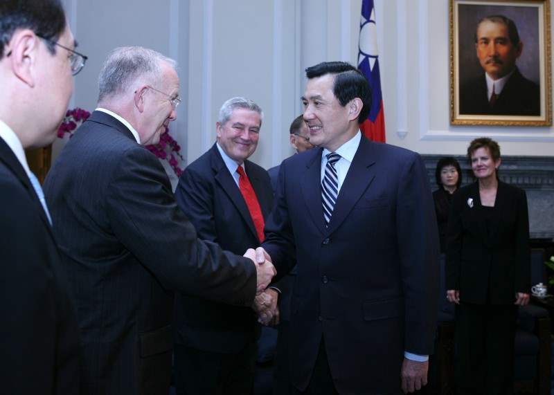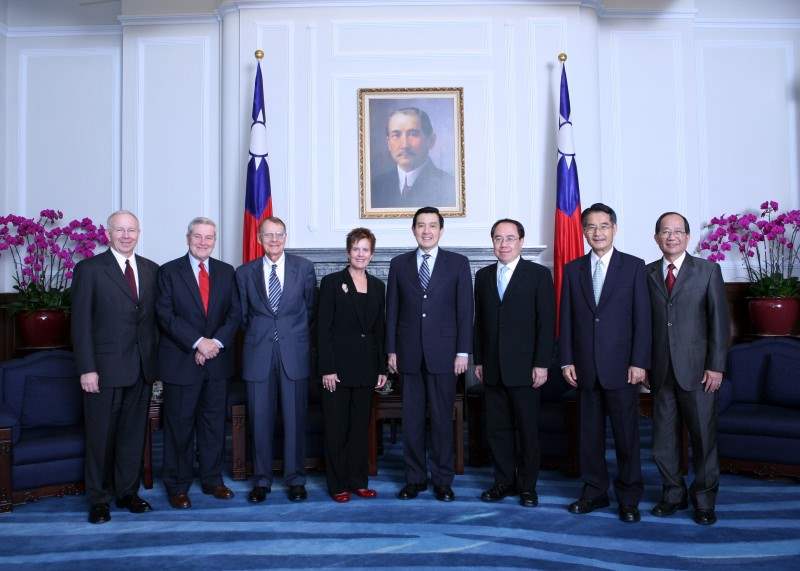 「國際土地政策研究訓練中心」美方理事下午由農委會主委陳武雄陪同,前來總統府晉見總統,國安會副秘書長何思因也在座。