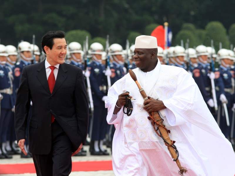 馬英九總統今天上午以隆重軍禮歡迎率團來台訪問的甘比亞共和國總統賈梅 (Yahya A.J.J. Jammeh)。