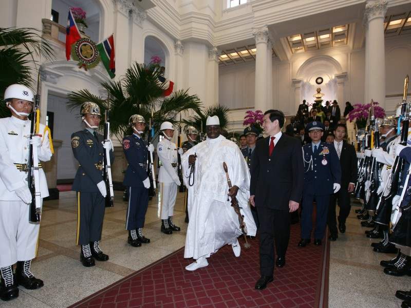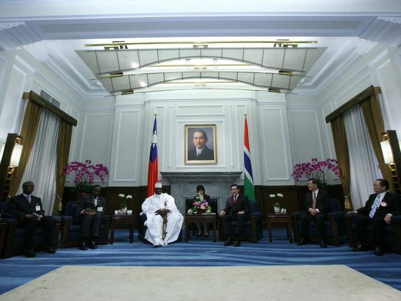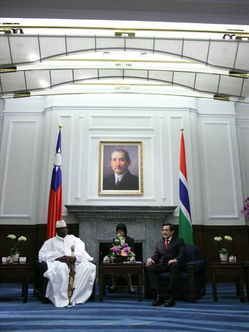甘比亞共和國總統賈梅率該國訪問團,上午由我國外交部部長歐鴻鍊陪同,在歡迎軍禮結束後前來總統府會見馬總統,蕭萬長副總統、總統府秘書長詹春柏、國安會秘書長蘇起及兩國駐使也在座。