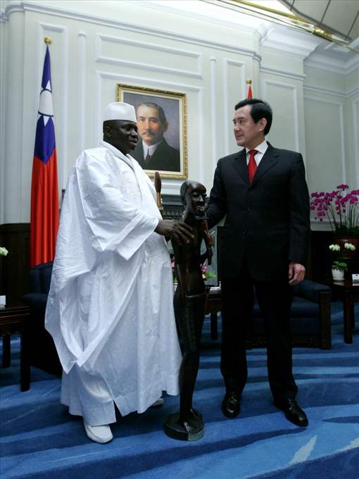 馬英九總統今天上午在總統府與甘比亞共和國總統賈梅(Yahya A.J.J. Jammeh)會晤,並代表我國政府及人民對賈梅總統再度率團來訪,表達歡迎之意。