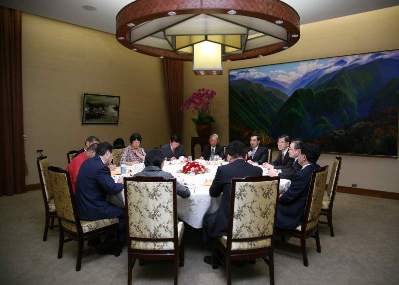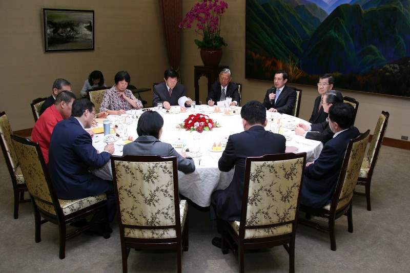 馬英九總統今天下午偕同蕭萬長副總統邀請總統府國策顧問茶敘,針對我國未來的體育發展方向交換意見。