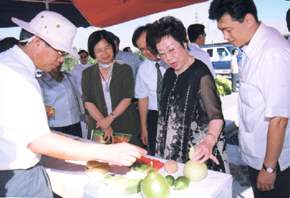 隨後,副總統轉往亞洲蔬菜研究發展中心訪視,除聽取該中心主任鄒生博士的簡報外,也參觀該中心的原生蔬菜種原繁殖與展示圃、種子銀行及轉基因植物溫室。