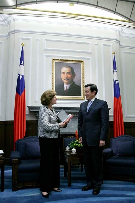 國際透明組織主席拉貝勒女士暨台灣透明組織幹部下午前來總統府晉見總統,國安會諮詢委員詹滿容也在座。