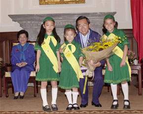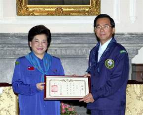 陳總統水扁先生今天下午在總統府接見中華民國女童軍總會代表,除肯定該會長期為社會大眾所做的服務與奉獻外,並接受中華民國女童軍會長聘書、佩帶女童軍領章及至善獎章。