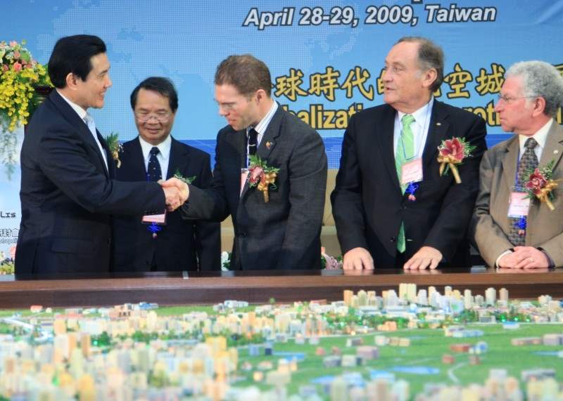 總統表示,桃園機場在民國68年2月落成啟用後,成為當時亞洲十分先進的國際機場,並吸引許多國際人士前來考察,但經過多年使用,機場設備與規劃已顯老舊,另因機場發展前景不明,致使桃園國際機場的發展受限,因此他在二年前競選總統時特別將朱立倫縣長提出的航空城構想納入「愛台12建設」之中,規劃將機場周邊約5千多公頃的土地納入分期開發計畫,同時結合台北縣的台北港建構交通策略聯盟,進一步推動海空聯運成為航空城重要的對外交通管道。