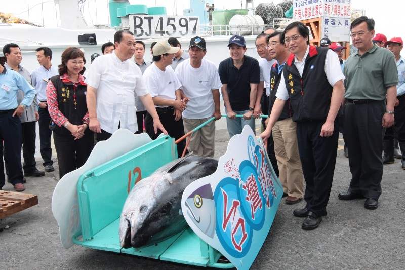 馬英九總統今天下午南下屏東縣東港鎮參加2009屏東黑鮪魚文化觀光季開幕典禮,為黑鮪魚文化觀光季主持啟動儀式。在啟動儀式之前,總統與屏東縣曹縣長、漁會總幹事及多位漁民,合推一條重達206.8公斤的黑鮪魚上舞台,進行公益拍賣,並將拍賣所得100萬元全數捐助給屏東社會救助專戶,作為協助貧窮家庭之用。隨後,總統也為「歡喜迎黑鮪」踩街隊伍授旗。