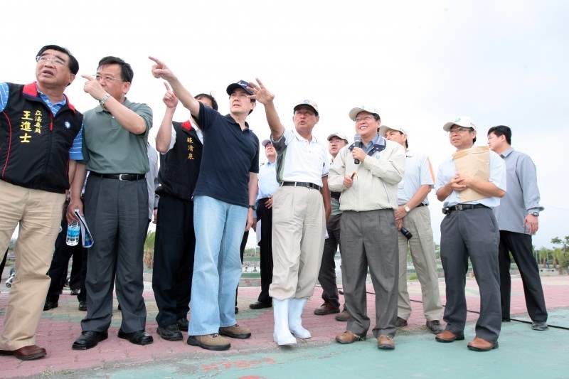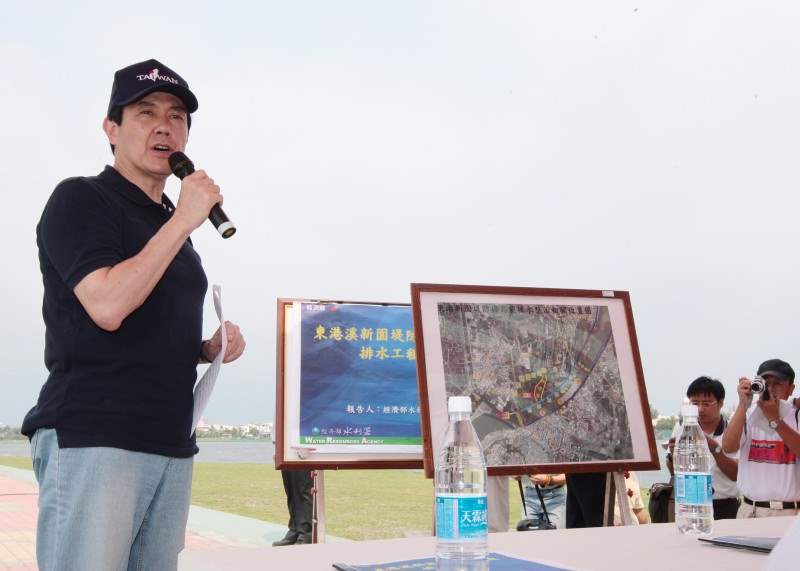 之前,總統前往視察東港溪整治工程及烏龍排水路整治工程。在聽取經濟部水利署陳署長簡報後,總統表示,去年他曾經到此視察,今天再度前來,看到中央治水方案有進展,內心深感欣慰。對於水利署今年這項整治計畫的目標,即,淹水面積減少40%、受影響人口減少到1000人以下,他認為,汛期將至,正是考驗治水成果的時刻;此外,今年這項工程完工後,仍可能有20至30公分的淹水水位,對低窪地區仍有影響,因此在短期內,如果無法達成不淹水的終極目標,至少也應做到家戶不淹水,他指示政府應該要關心少部份淹水地區,鼓勵家戶裝置防水閘門,由政府補助一半的經費,以先渡過今年的汛期難關。
