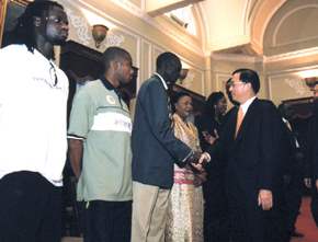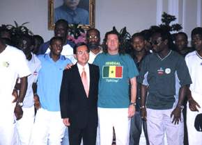 塞內加爾體育部長Joseph Ndong上午率領塞國國家足球代表隊一行七十餘人,由外交部部長簡又新、行政院體育委員會主任委員林德福陪同,前來總統府晉見總統。總統府副秘書長吳釗燮也在座。