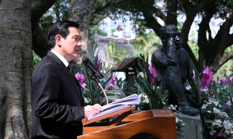 雖然八田先生對臺灣的貢獻是在日本統治臺灣的50年期間,然而英九一向認為:針對歷史事件,我們應該尊重史實、就事論事,在日據時代對臺灣有貢獻的日本人,我們應該給予肯定;但如果是以侵略者或殖民者的心態來欺壓臺灣人民,我們也一定會加以批判。今天,看著座落在這邊的八田與一先生銅像,他專注沈思的模樣,好像依舊關心烏山頭水庫的發展狀況,這是他對臺灣農業現代化最重要的貢獻。