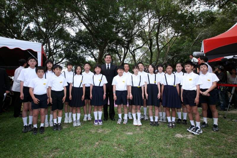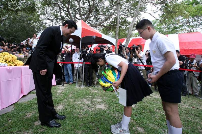 馬英九總統今天下午在台南縣烏山頭水庫參加該水庫設計者八田與一技師逝世67週年追思會,向八田與一先生的銅像致祭。