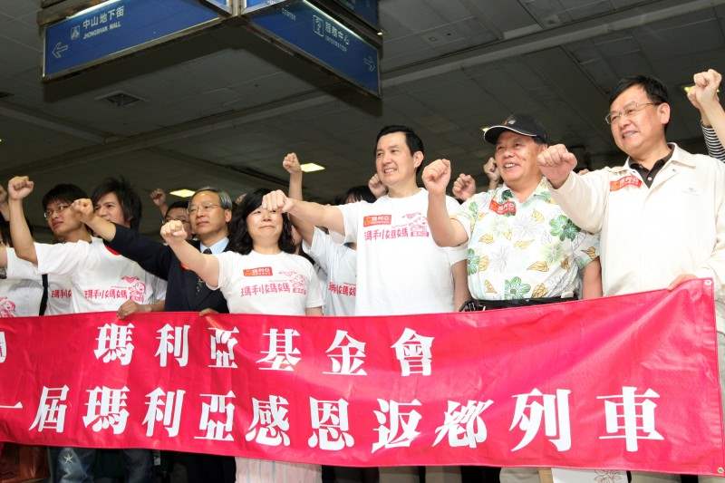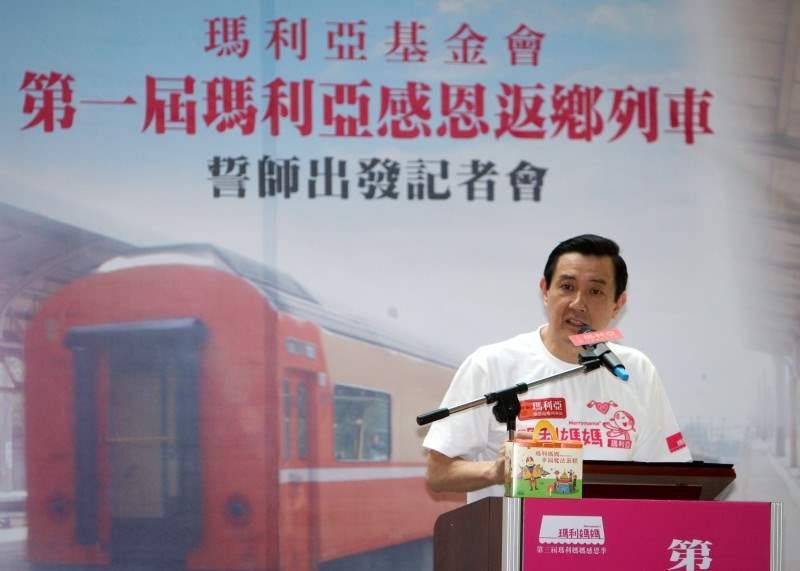 馬英九總統今天上午出席由瑪莉亞基金會主辦的第一屆瑪莉亞感恩返鄉列車誓師出發記者會,並擔任榮譽列車長,見證出發儀式。
