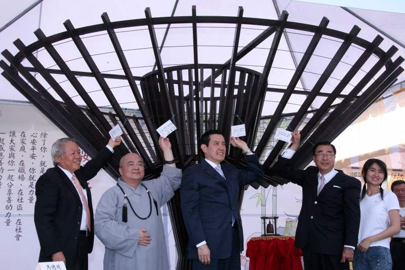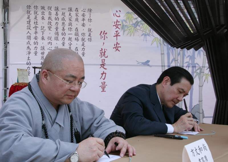 馬英九總統今天上午前往國父紀念館出席法鼓山「心安平安-你,就是力量」活動暨「好願祈福感恩會」開幕式,除應邀致詞,並與出席貴賓至感恩樹區書寫「善的力量」打氣卡,以「積極人生、謙虛滿分;充實自我、關懷他人」與國人共勉。