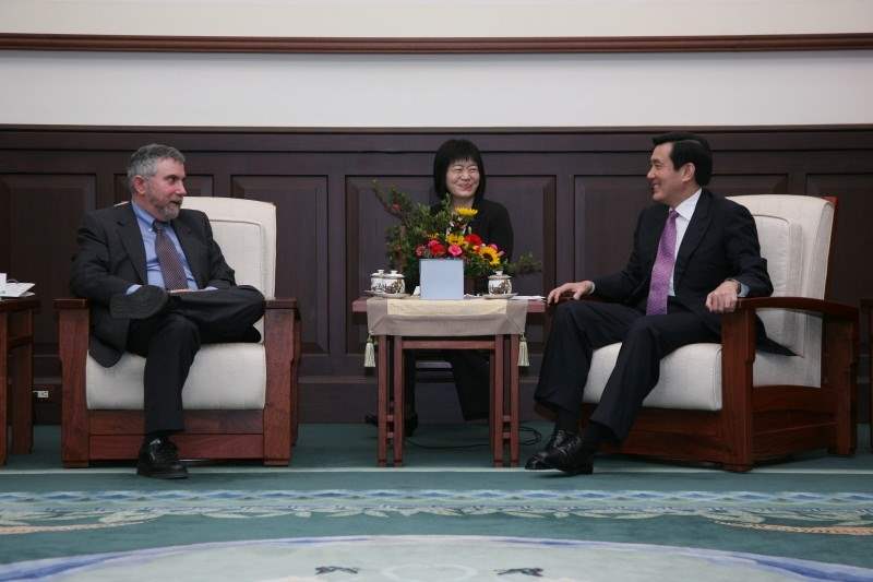 馬英九總統今天下午在總統府接見2008年諾貝爾經濟學獎得主保羅克魯曼博士(Prof. Paul Krugman),對訪賓來台,代表我國政府與人民表達最高的歡迎與感謝之忱。