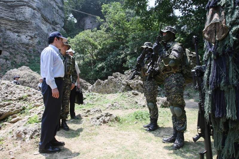 總統指出,海軍「忠義軍風」與陸戰隊「永遠忠誠」的隊訓,代表國軍建軍以來重要的精神與力量。總統說,儘管我們現在與大陸改善兩岸關係,但他從去年開始巡視部隊的時候,就強調我們建軍備戰仍舊不能鬆懈,國軍防衛作戰的原則就是「上兵伐謀,其次伐交,其次伐兵,其下攻城」,所以我們透過兩岸協商以及許多相關政策的運用降低兩岸的緊張,讓台海能夠恢復和平,這樣的結果讓鄰近的國家以及友邦都高度肯定。儘管如此,兩岸還有許多值得我們注意的發展,從去年他上任迄今,中共在海峽對岸的部署沒有增加,但也沒有減少,大致維持原有的部署強度,因此,我們當然沒有理由自我鬆懈,建軍備戰還是要繼續進行。