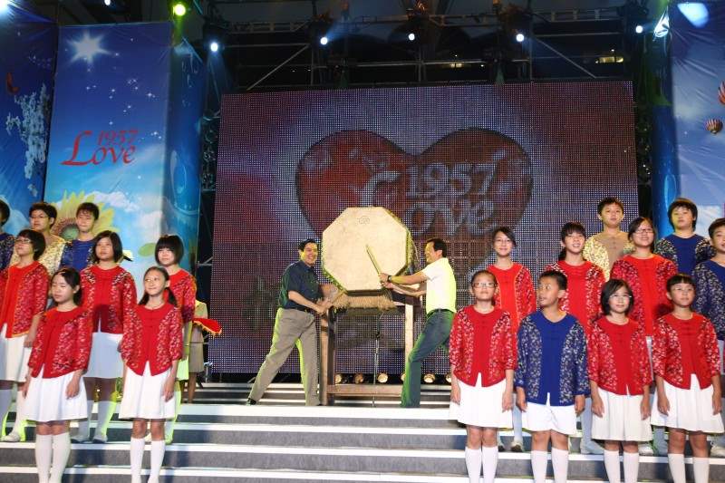 馬英九總統今天晚間出席台北縣政府舉辦的「1957把愛傳出去」活動,除與周錫瑋縣長一同啟動「把愛傳出去」儀式,並應邀致詞。