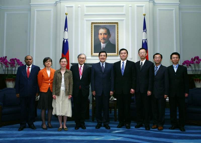 馬英九總統今天下午接見國際智庫學者包括香港中文大學校長暨中央研究院院士劉遵義、法國前瞻研究與國際訊息中心主任Agnes Benassy-Quere、英國皇家國際事務研究所國際經濟研究部門主任Paola Subacchi及新加坡東南亞研究所主任K. Kesavapany等一行,對訪賓應中華經濟研究院邀請來台參加「國際經濟危機之衝擊與啟示國際研討會」,表達誠摯的歡迎與謝忱。
