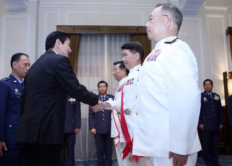 今天非常高興能夠主持三位國軍高階重要幹部的授勳晉任典禮。海軍司令王上將任內致力於海軍建軍備戰及軍務革新工作,認真盡職,這次任期屆滿,調任總統府戰略顧問,特別頒授二等雲麾勳章,以表彰其卓越的貢獻;副參謀總長高上將任內負責聯合作戰訓練、國軍準則發展及整體後勤整備,績效卓著,特頒授三等寶鼎勳章並調升海軍司令;海軍副司令陳中將任內督導海軍戰備整備及教育訓練,成效優異,特予拔擢晉升海軍二級上將,同時升任副參謀總長,這些都是他們為國軍辛勤努力與貢獻所應獲得的殊榮,我要對這三位傑出的將領表達祝賀與嘉勉之意。隨著職務與階級的提升,也代表著所承擔的責任也越重,今後,希望能借重他們擘劃的長才,在新的職務上,繼續貢獻更多的智慧與心力。