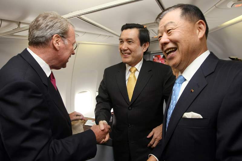隨後,總統並至座艙逐一向隨行人員,包括媒體朋友握手致意,感謝工作人員的辛勞以及大家對此次訪程的熱情參與。