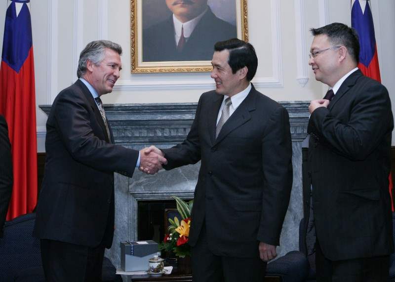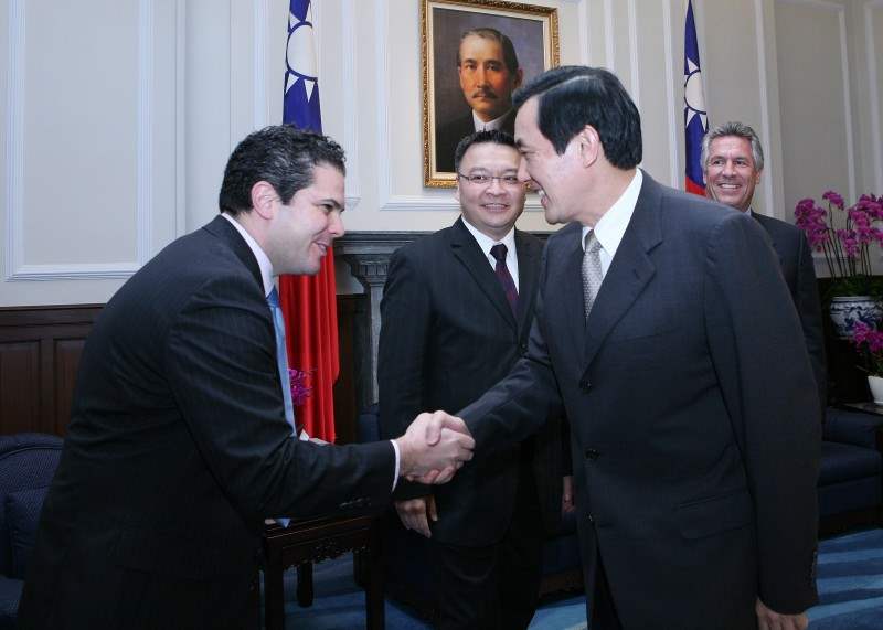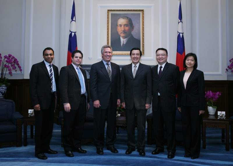 史賓林特董事長等人下午由經濟部長尹啟銘陪同,前來總統府晉見總統,國家安全會議副秘書長何思因也在座。