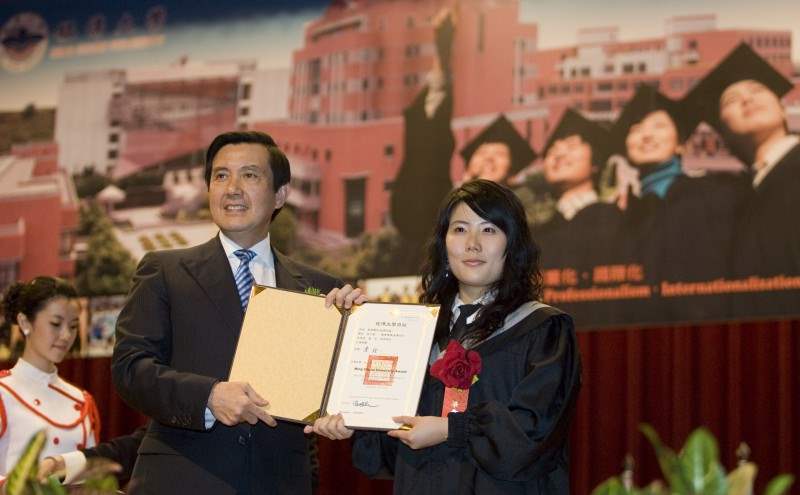 總統指出,銘傳大學李銓校長治校理念精到,讓學生與老師同時學習、提升本身的能力,尤其非常強調國際化,今天畢業的4700多位同學當中,有125位來自國外,比例達2.6%,與台灣外籍學生占大學生比例的1.3%相比,幾乎是兩倍,這點相當不容易。總統說,台灣國際化的腳步在教育上並不算快,但銘傳大學絕對是走在前面的幾個學校,這一點非常值得肯定。