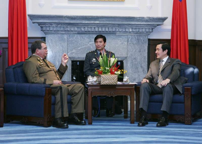 尼加拉瓜三軍總司令阿耶斯雷門斯上將伉儷,下午由尼國駐台大使達比亞(William Manuel Tapia Aleman)、我國國防部部長陳肇敏、參謀總長林鎮夷及國防部次長林正霄陪同,前來總統府晉見總統,國安會副秘書長李海東也在座。