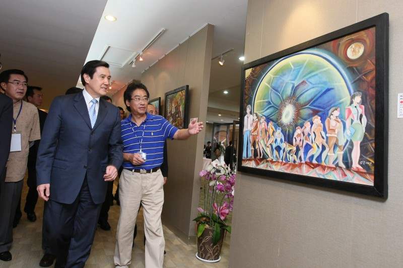 總統首先前往陳姿蓉畫展會場,為畫展揭幕,並參觀其畫作。陳姿蓉現年26歲,3歲時因車禍意外造成言語及記憶功能障礙,七年多來,在遠東科技大學及趙嗣強教授協助下,她發揮驚人的繪畫天份,創作出令人讚嘆的畫作,並於97年5月首度舉辦個人畫展。總統致詞時表示,遠東科技大學願意讓陳姿蓉接受趙老師的指導,以及趙老師無私地付出與教導來成就一位有才華的畫家,十分令人感動。這些畫作從具體的意象到意境,進而成為意念展現的過程,充分展現了陳姿蓉在趙老師的教導下逐漸進入藝術殿堂的過程。總統也勉勵陳姿蓉,希望她不要放棄繪畫的熱情,讓自己的人生也能像畫作一般色彩繽紛。