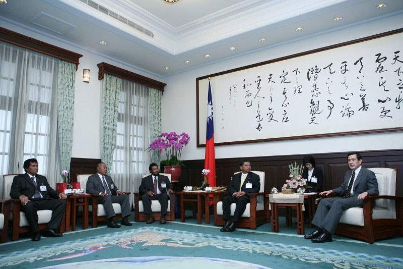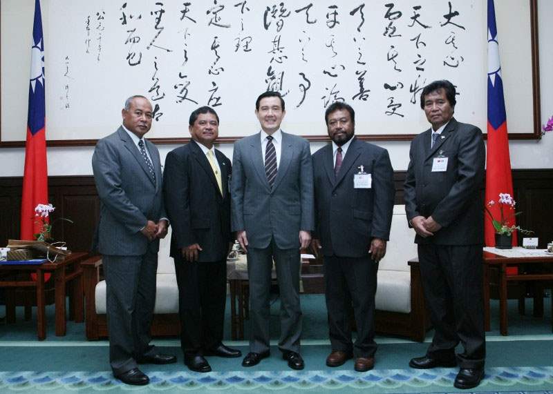 帛琉共和國國會參議院議長墨杜、眾議院議長義德翁、參議員阿基塔亞(Regis Akitaya)以及眾議員翁尼道布(Swenny Ongidobel),上午由我外交部次長侯清山陪同,前來總統府晉見總統,國安會秘書長蘇起也在座。