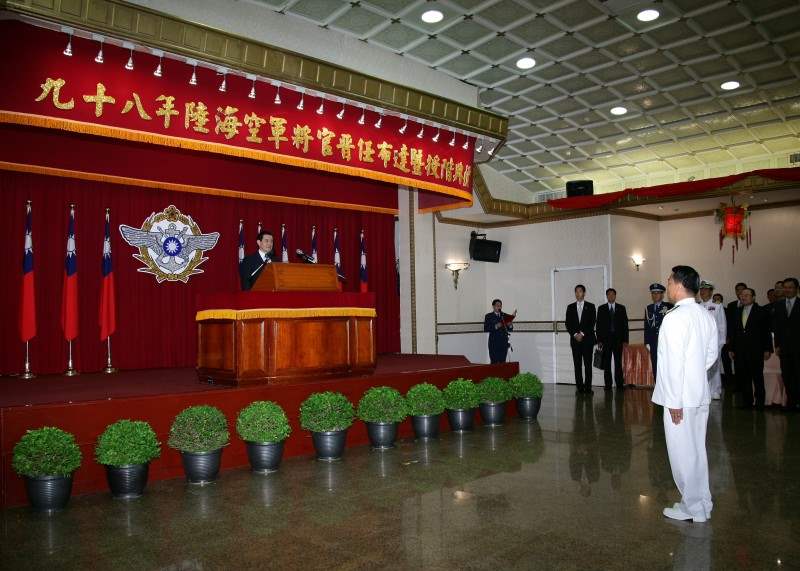 馬英九總統今天上午主持98年下半年陸海空軍將官晉任布達暨授階典禮,除一一向晉任人員祝賀,也表達對高階國軍將領的期許,期勉他們以身作則,為國軍樹立最佳典範。