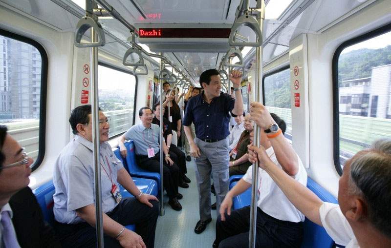 馬英九總統今天下午出席台北市捷運內湖線完工通車感恩之旅,除聽取捷運局及捷運公司相關簡報外,也實地搭乘電聯車,由松山機場站至終點站南港展覽館站,體驗內湖線完工後對市民大眾交通帶來的便利。